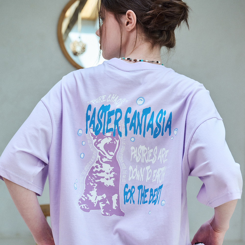 가벼운 소재로 그래픽이 특징인 스트릿 캐쥬얼 반팔티셔츠