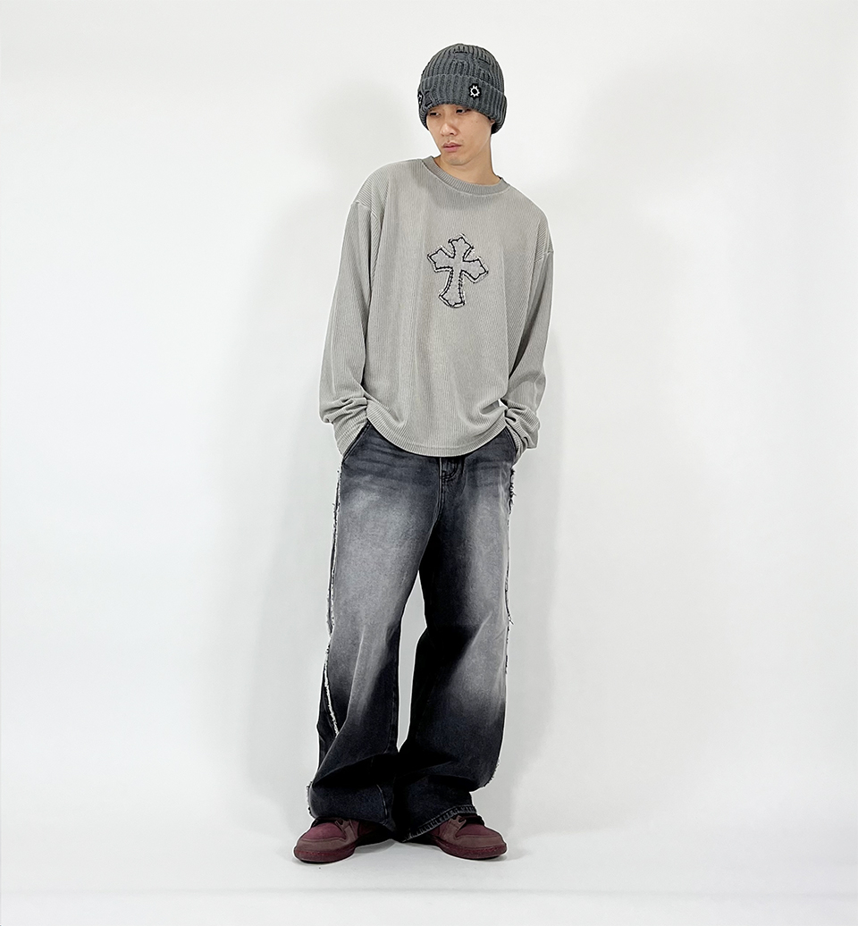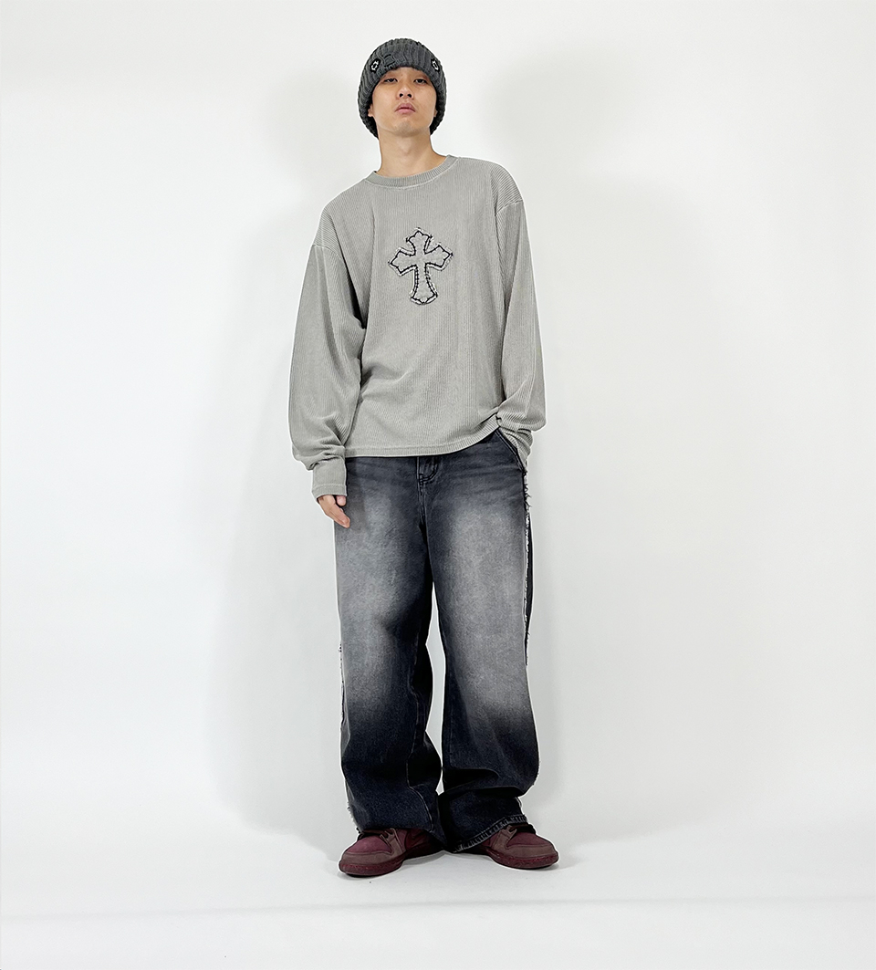 STUD CROSS UNCUFFED BEANIE_BLACK