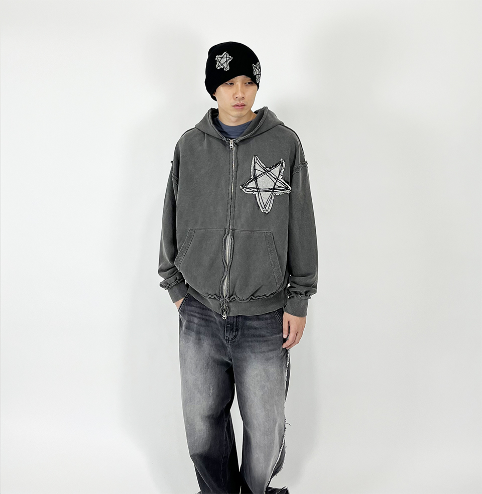 SP_CIRCLE_PIGMENT_OVERFIT_HOOD_ZIP_UP GREY