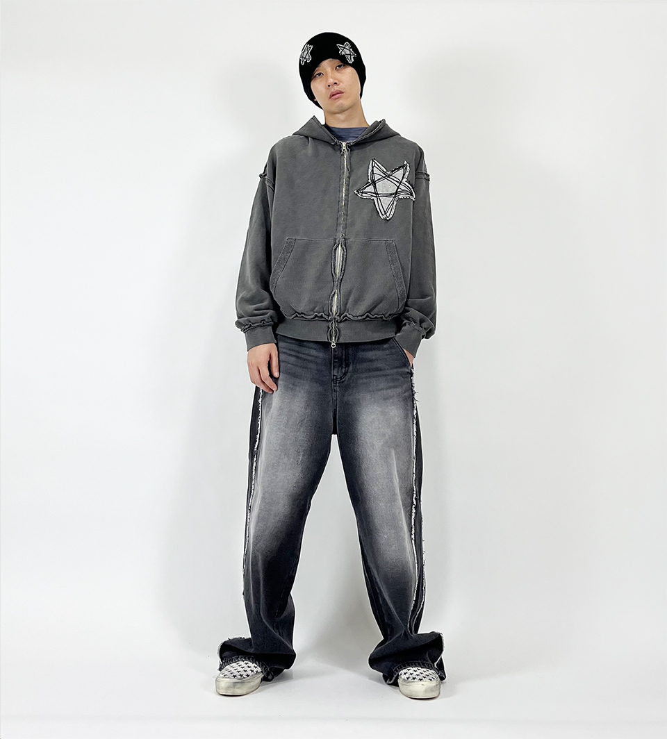 2-WAY Skirt Sleeve Pigment Hoodie Zip-up Smoke Black