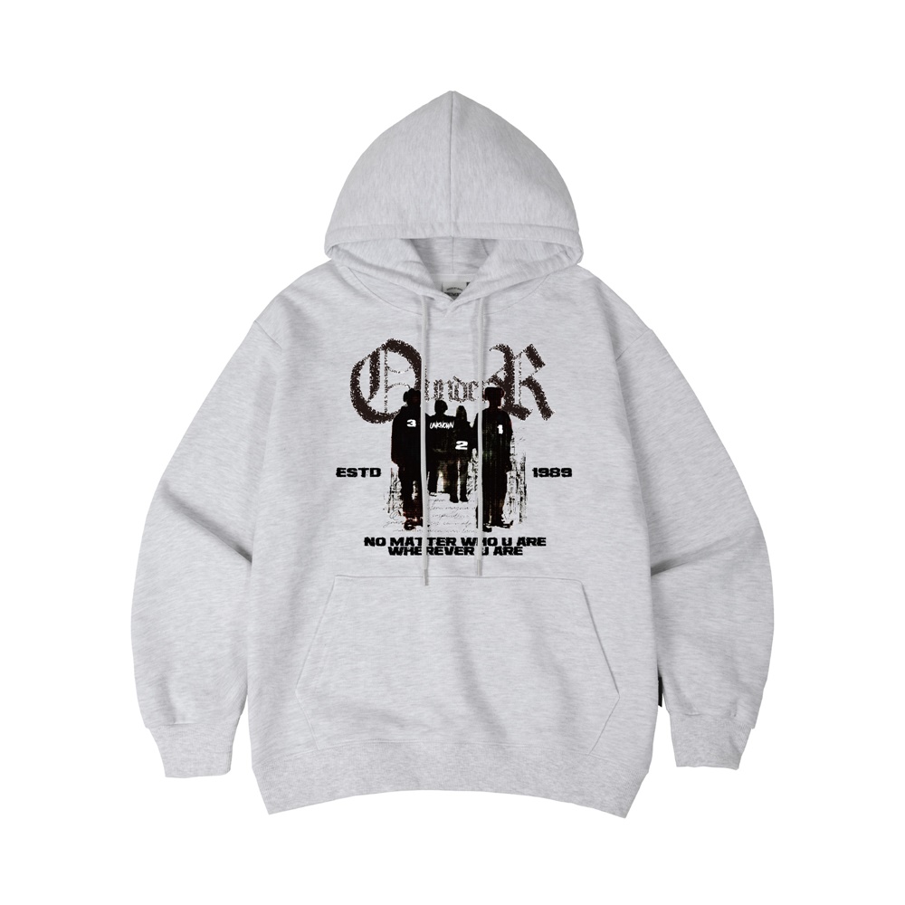 PLANET 오버핏 후드 티셔츠[화이트 메란지]