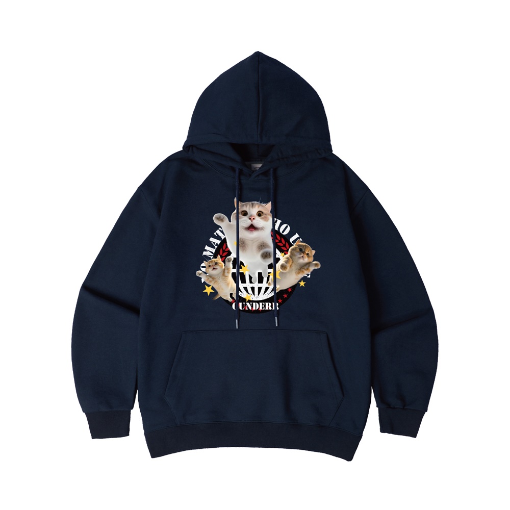 RIDING BIKE CAT 오버핏 후드 티셔츠 (와인)