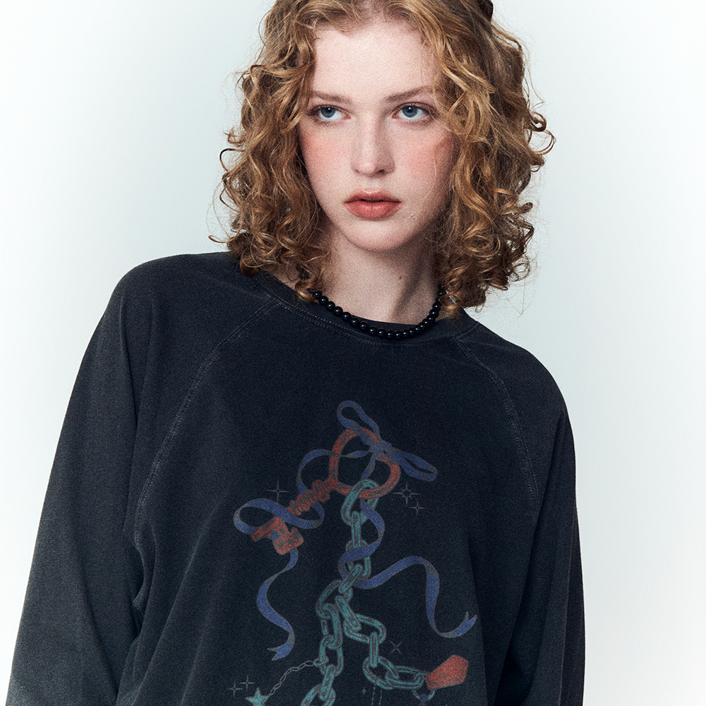 아트웍이 피그먼트 워싱되며 가공 처리하여 유니크한 무드를 연출했습니다.