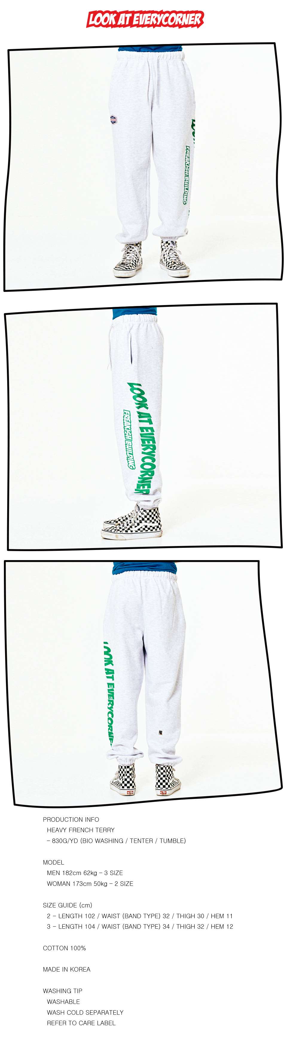 3 - LENGTH 104 / WAIST (BAND TYPE) 34 / THIGH 32 / HEM 12