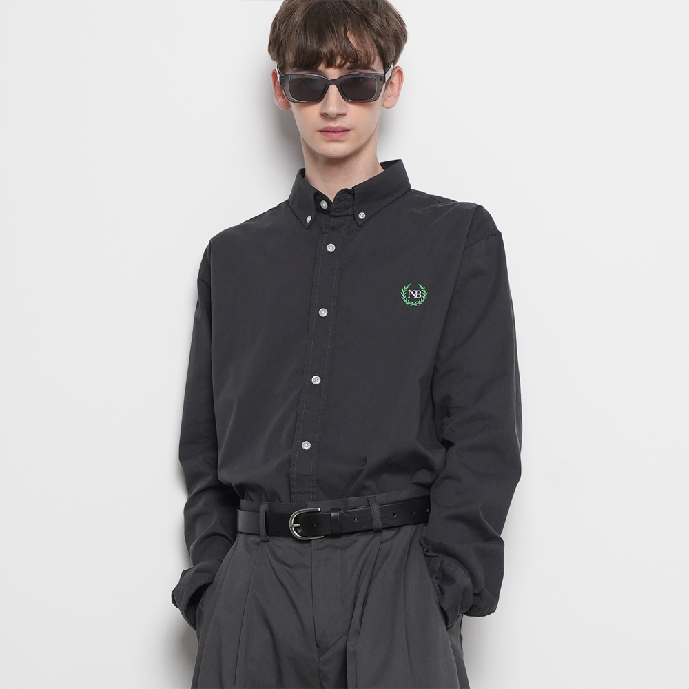 Embroidered Open Collar Pocket Shirt (Unisex) Khaki Four Corners