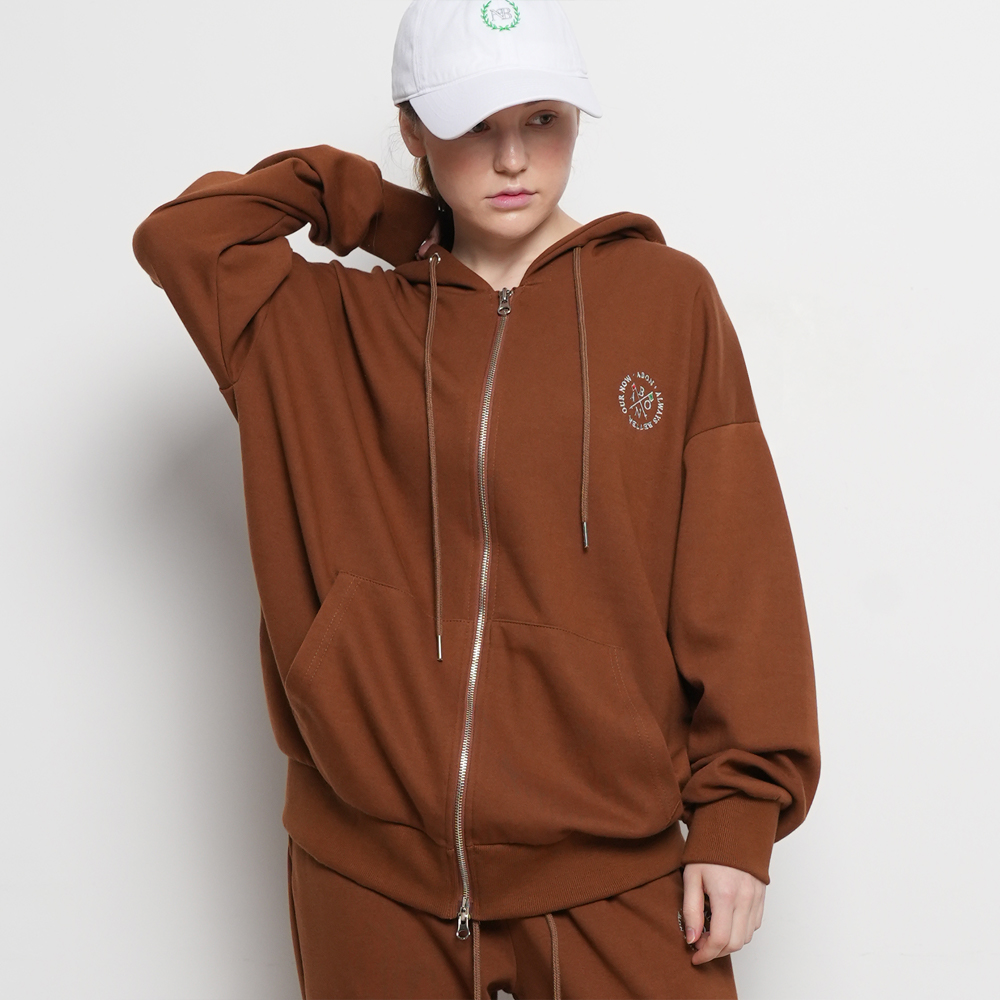 LOGO SPRAY WASHING HOOD ZIP UP (BRICK RED)