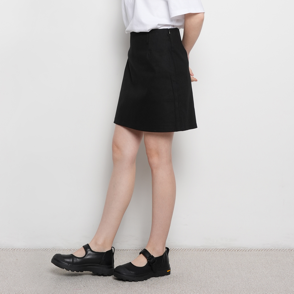스트레치가 있는 코튼/레이온 소재의 스커트로 앞 뒤 라인에 절개 디자인을하여 날씬해보입니다.