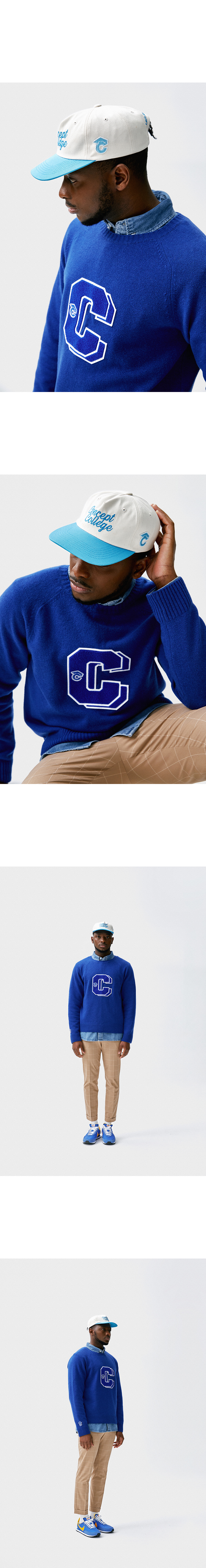 [컨셉트 컬리지] 더블 빅 C 패치 블루 램스울 니트 (남녀공용)