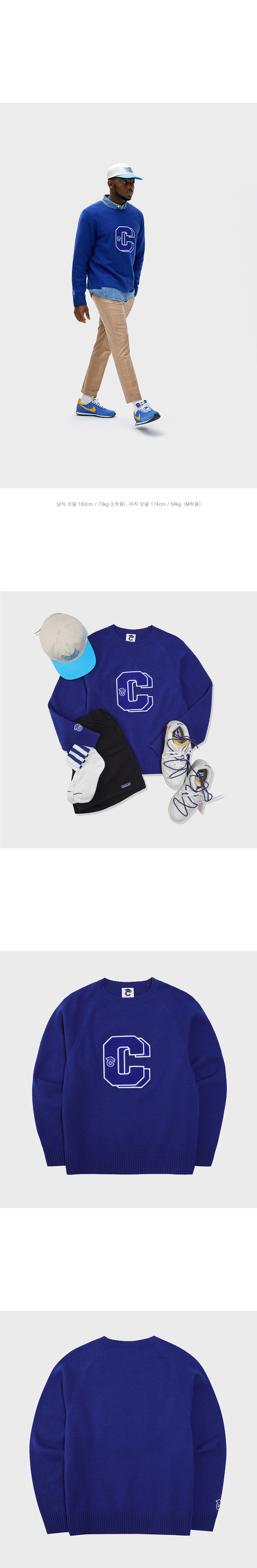 - 3D 커팅으로 디테일이 뛰어난 더블 C패치가 니트의 유니크함을 더해주었습니다.