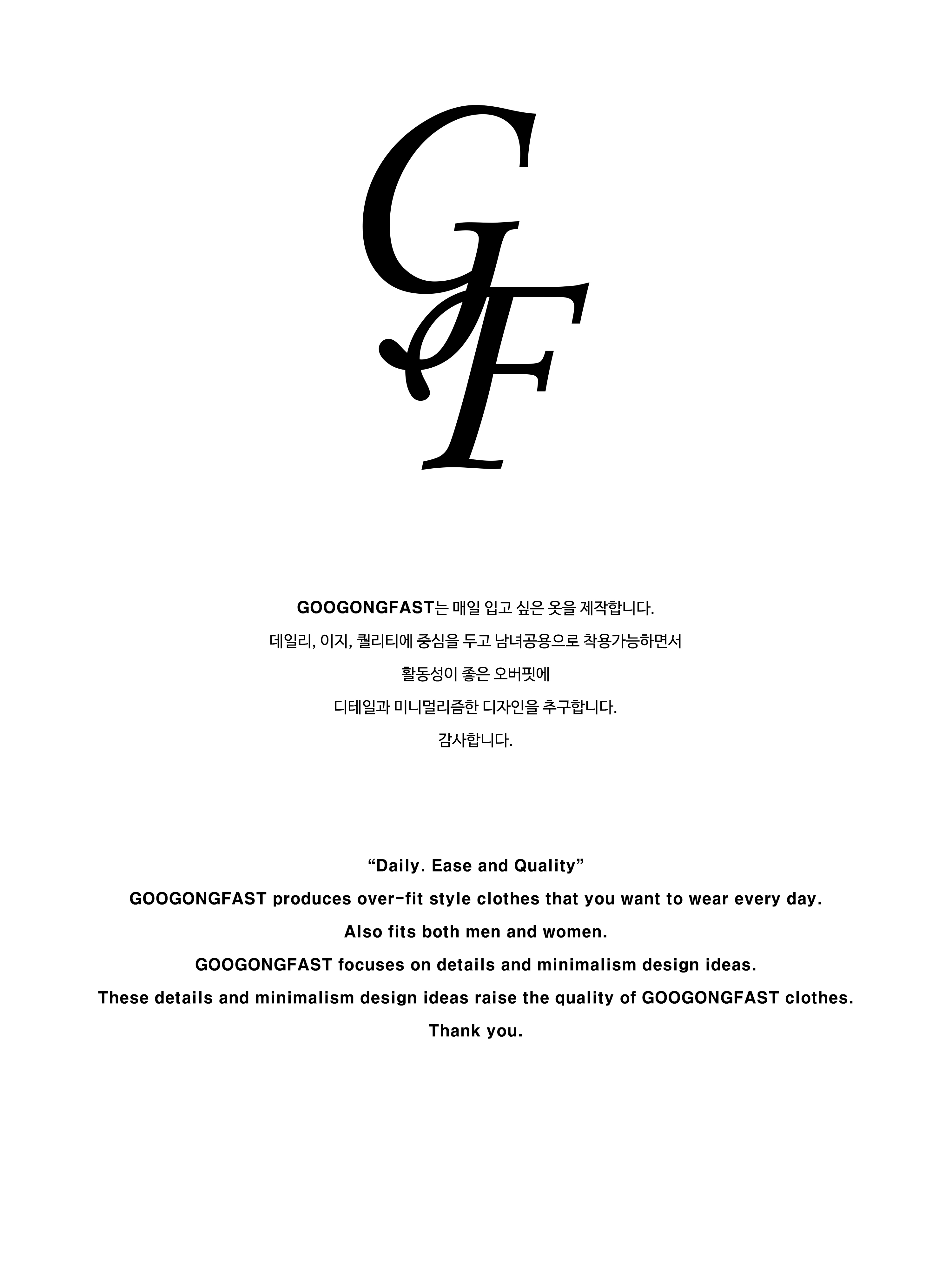 오버핏에 사이드 립원단을 사용하여 활동성을 높이고 옆면 라벨과 어깨라인 스티치로 포인트를 주었습니다.