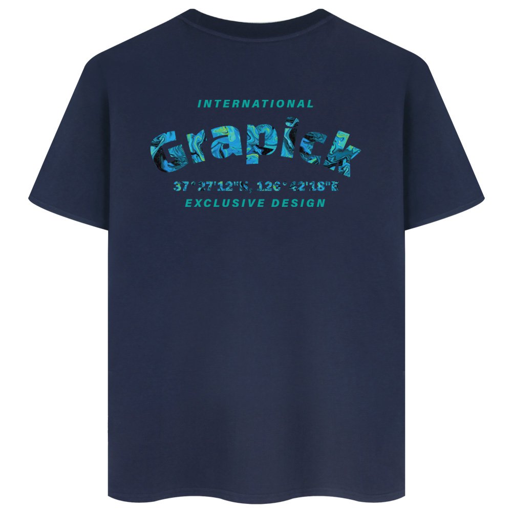 가벼운 소재로 그래픽이 특징인 스트릿 캐쥬얼 반팔티셔츠