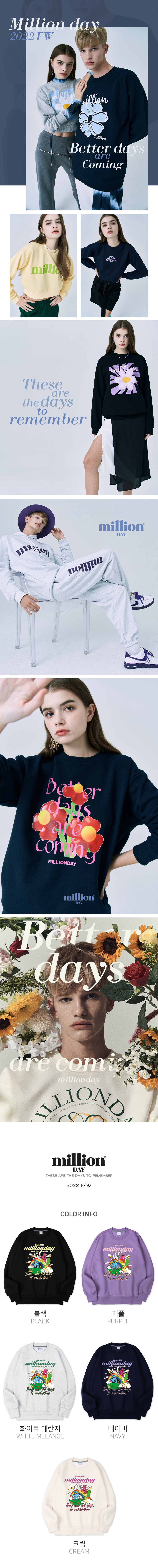 희망을 상징 하는 데이지 꽃이 들어간 맨투맨 제품 입니다