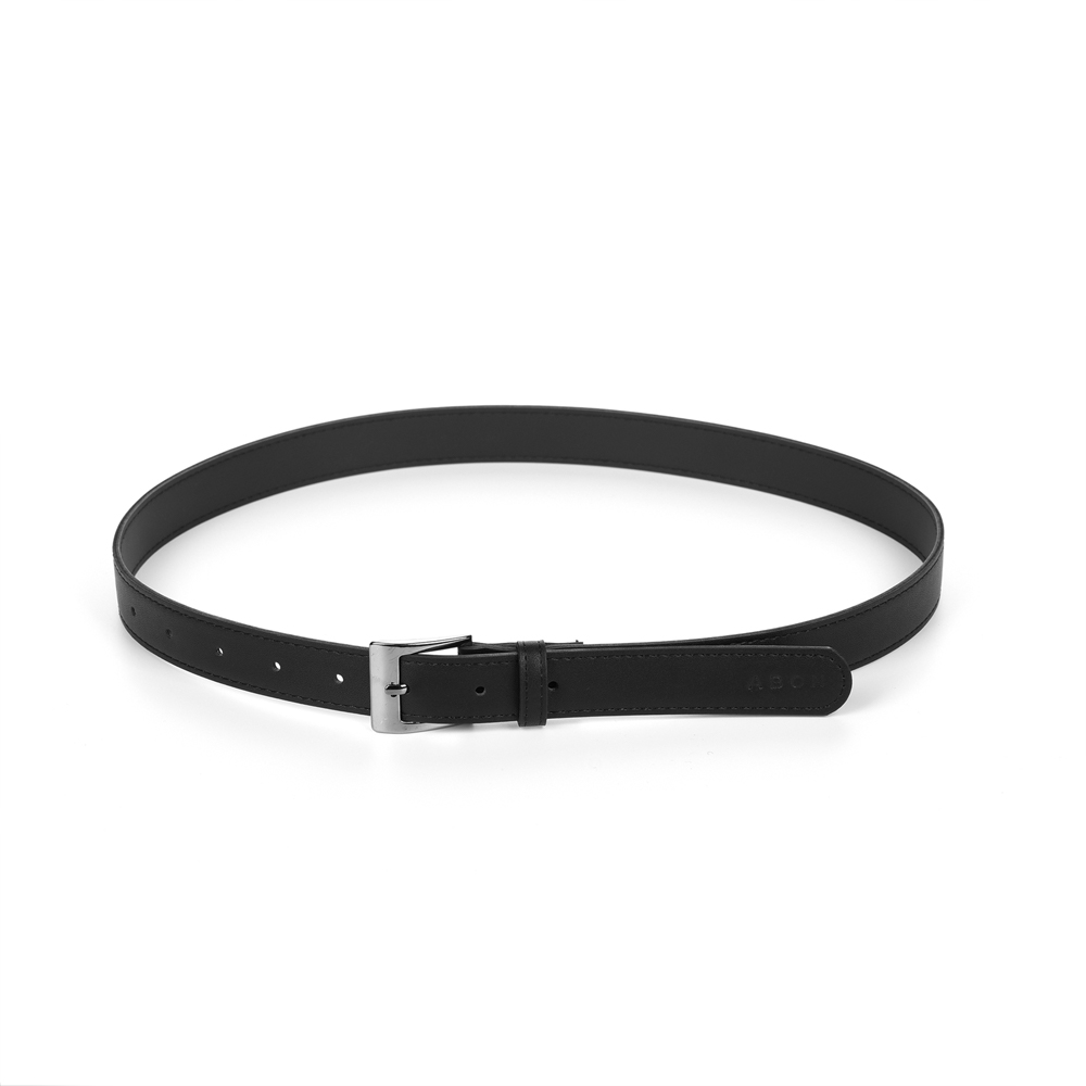 Miller Black Nickel Square Buckle Full-grain Leather Belt Black