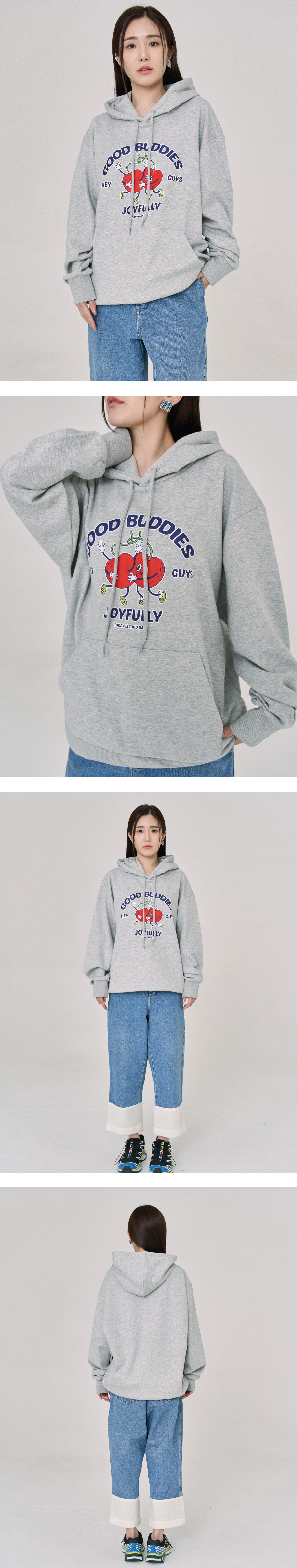 RIDING BIKE CAT 오버핏 후드 티셔츠 (멜란지 그레이)
