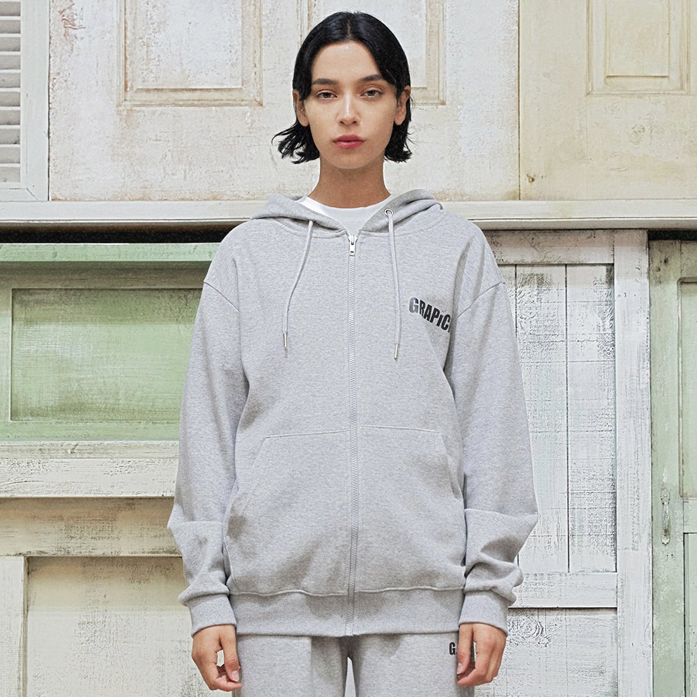 APPLIQUE STUD DYED HOOD ZIP-UP_CHAROAL
