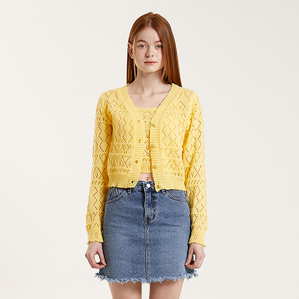 클래식하고 베이직한 꽈배기 조직과 볼드하지 않은 미디움 사이즈의 패턴으로 캐주얼한 디자인의 브이넥라인 니트 가디건 입니다.