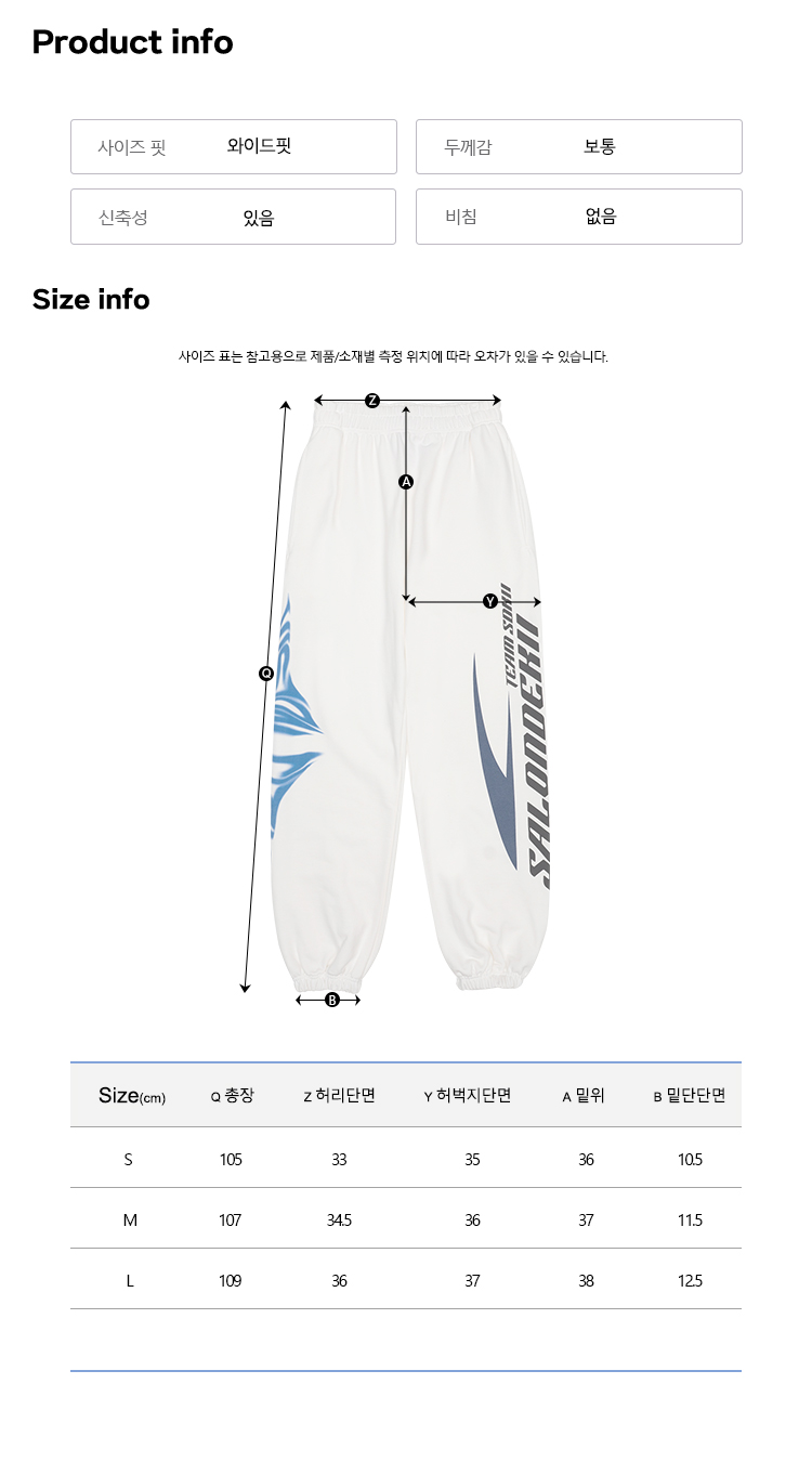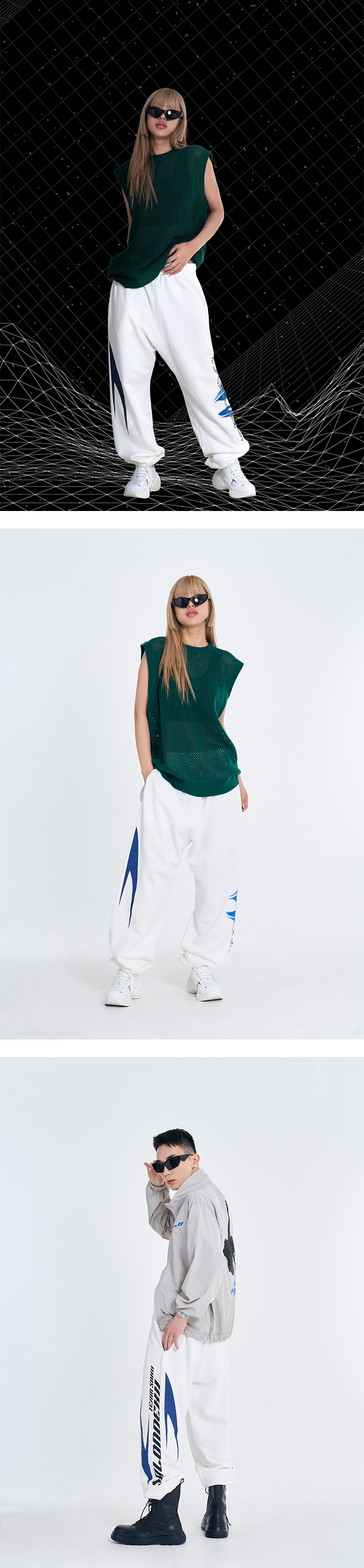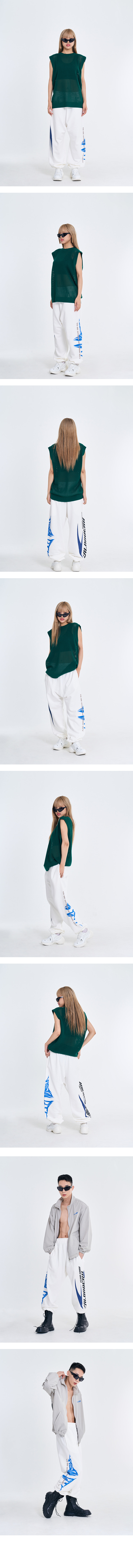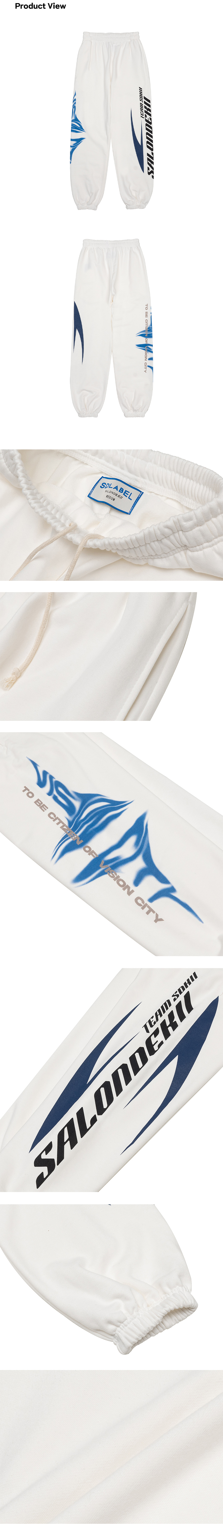 스포티한 무드의 살롱드키 로고와 유니크한 이팩트로 표현된 시즌 아카이브 VISION CITY 로고가 포인트인 540g 면 100% 테리 스웨트 원단을 사용한 조거팬츠입니다.
