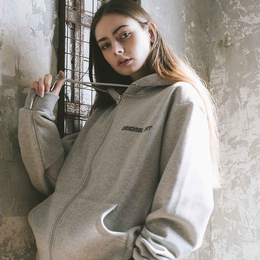 Oversized Plain Two-way Hoodie Zip-up (Charcoal)
