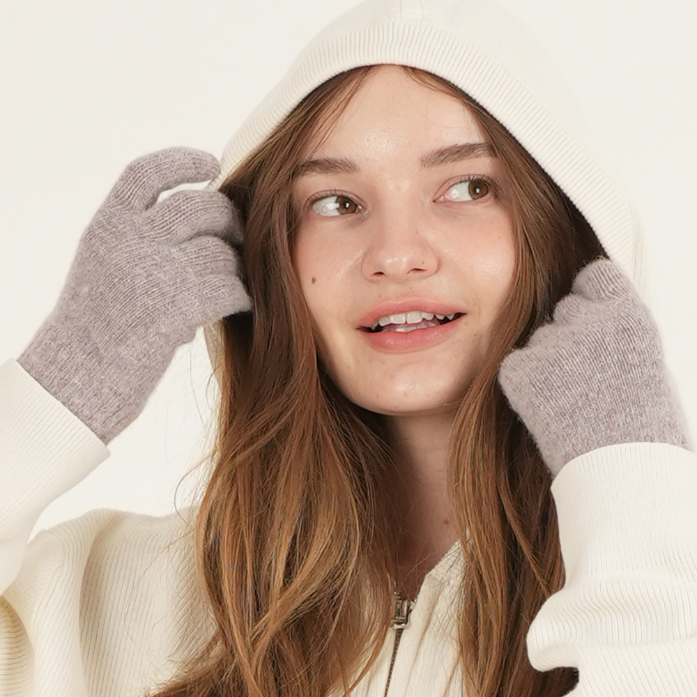 Stitch Finger Hole Long Knit Gloves ((melange beige))