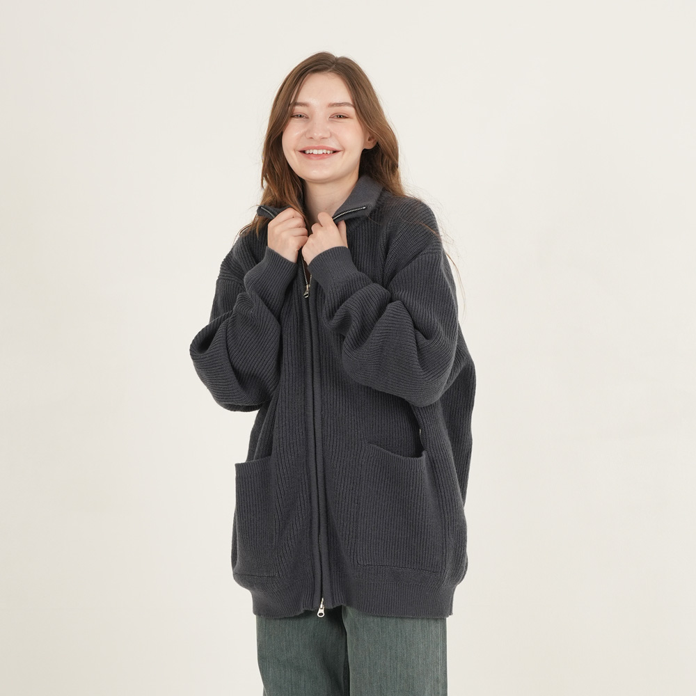 균형감 있는 실루엣과 코지한 무드의 후드 니트 집업