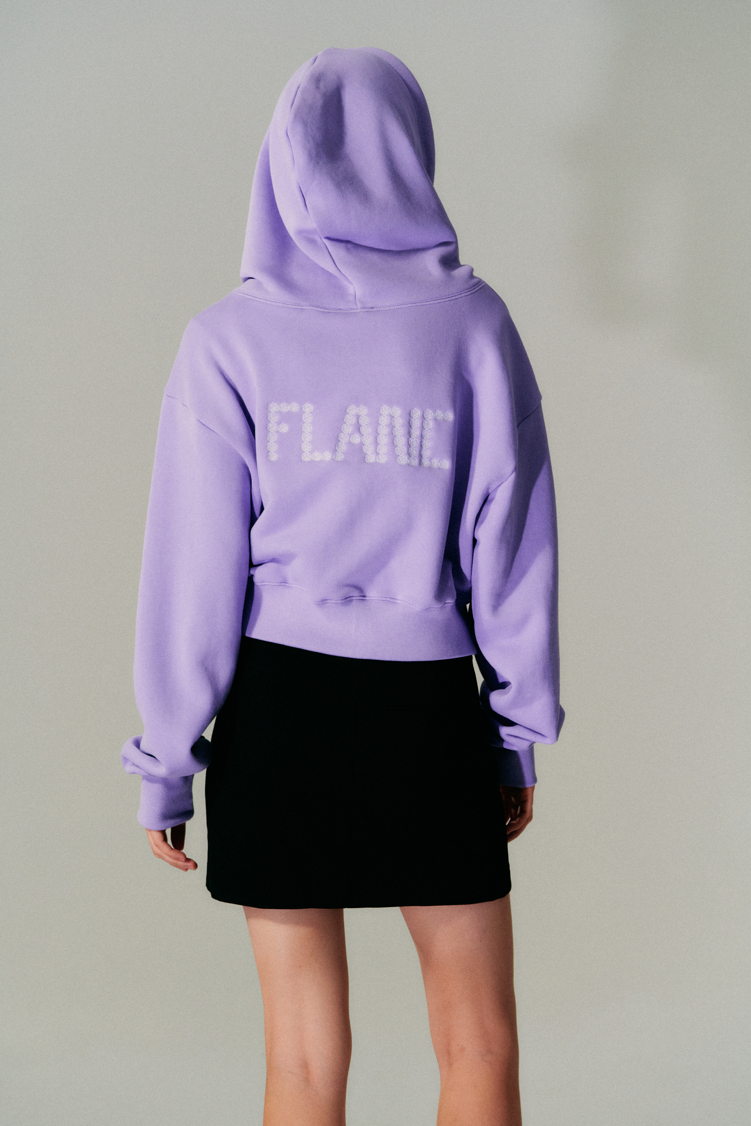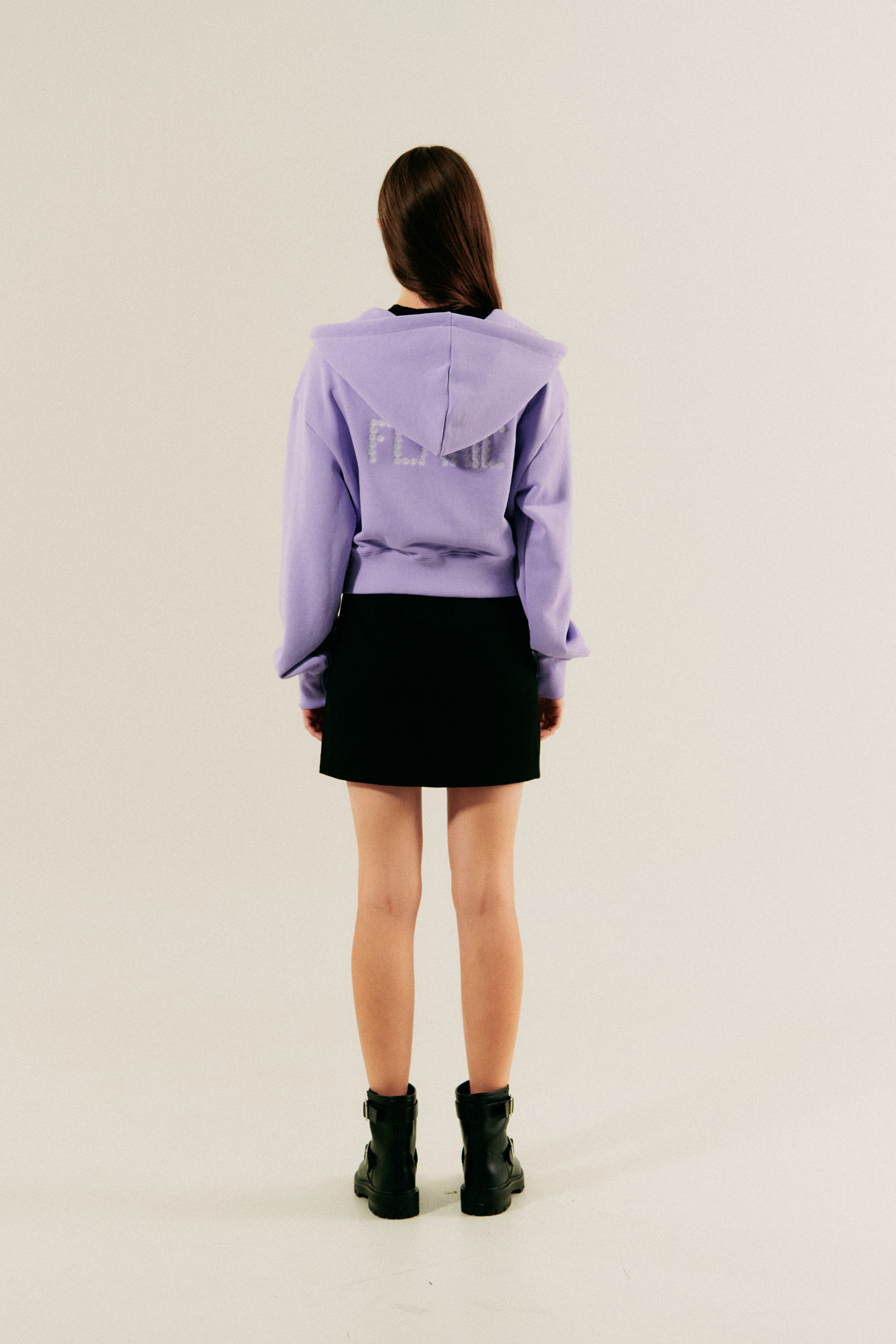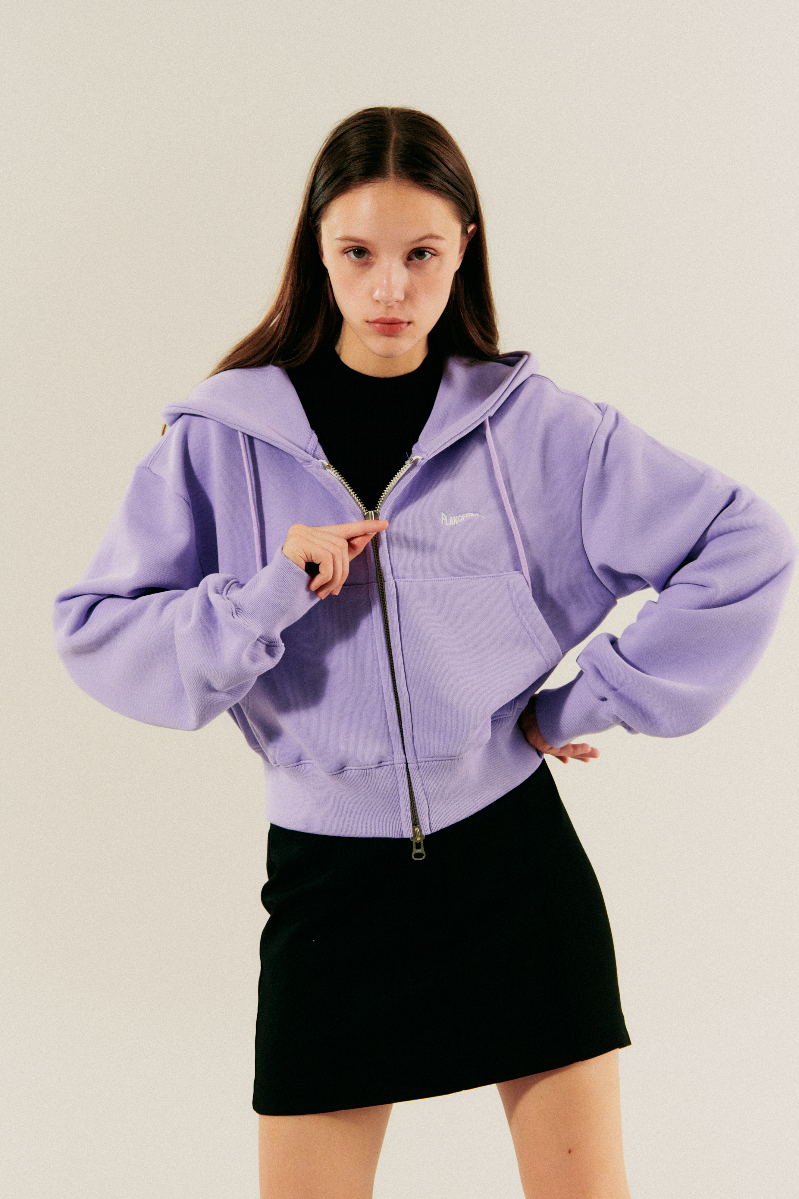 CLOVER BACK LOGO CROP ZIP UP HOODIE (YELLOW GREEN)