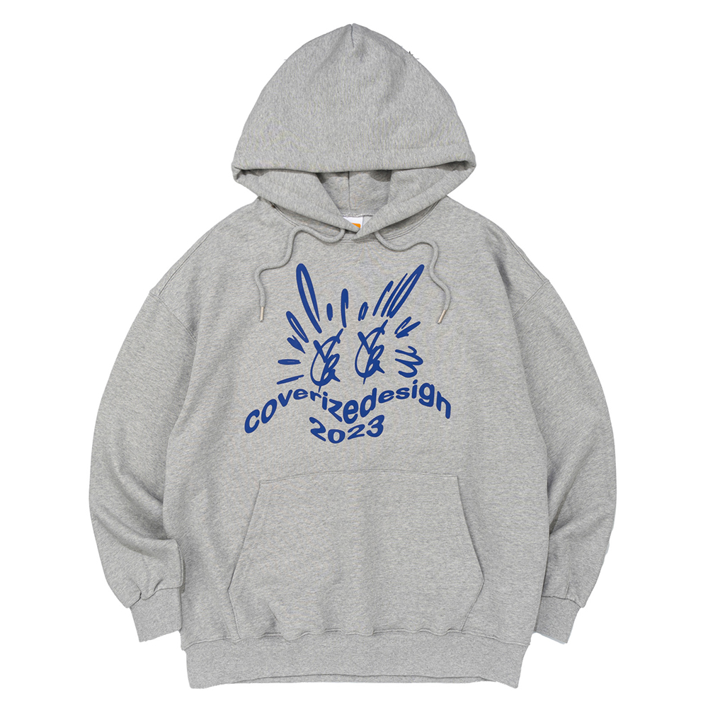 RIDING BIKE CAT 오버핏 후드 티셔츠 (멜란지 그레이)
