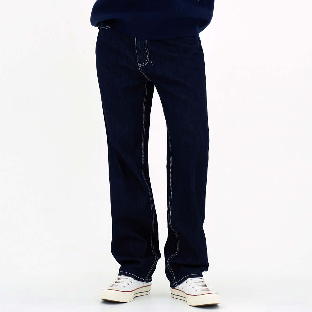 뒷포켓 D자수가 포인트인 와이드 데님팬츠