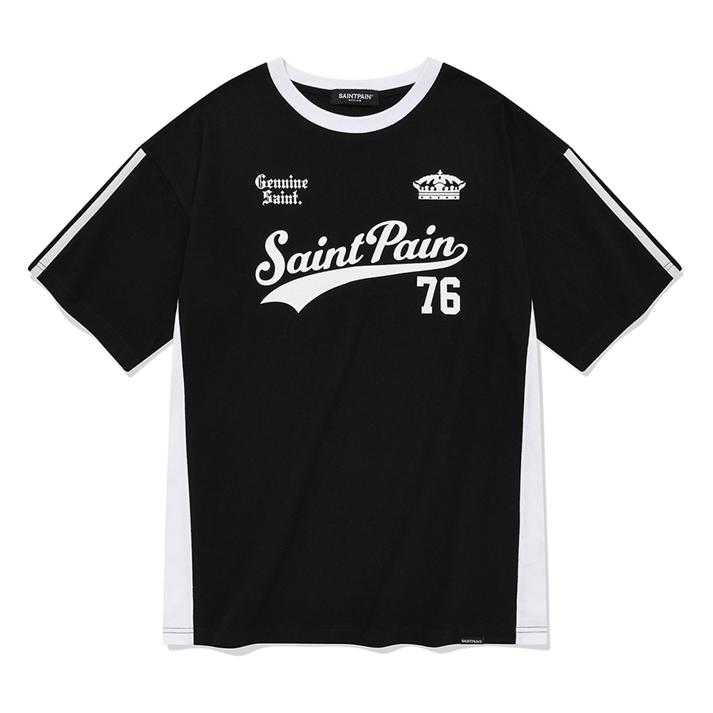 사커 두줄 테잎 배색이 돋보이는 스포티 무드의 반팔티