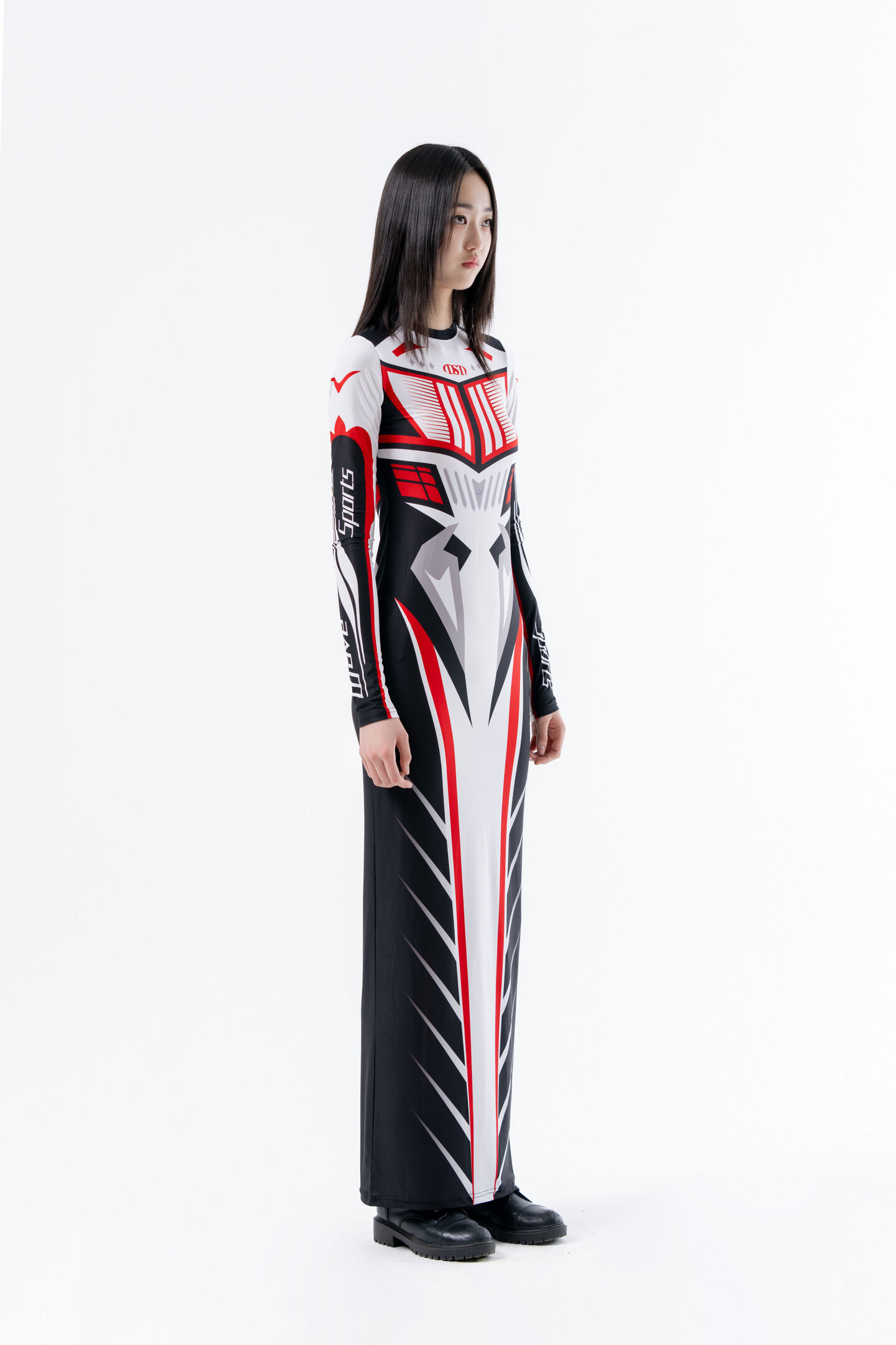 벨트로 포인트를 더한 슬리브리스 롱 원피스