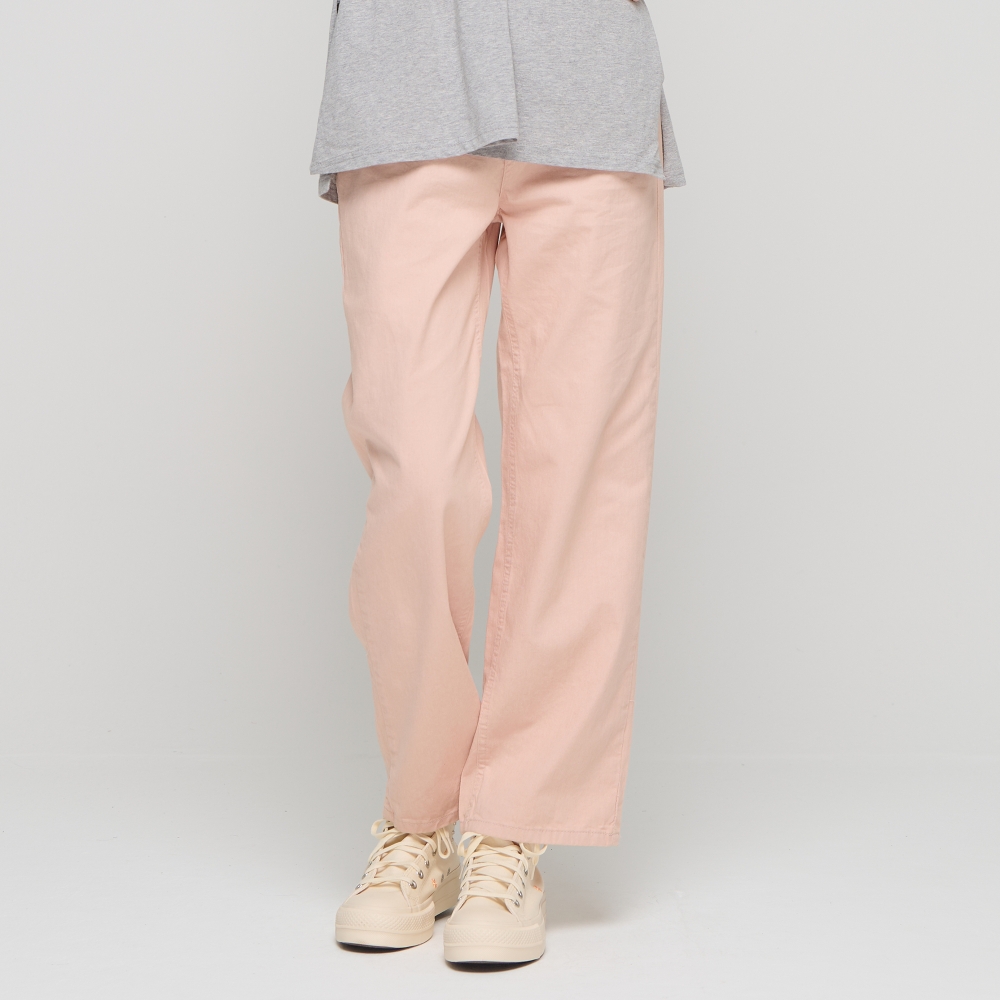 Woman Two Pintuck Pigment Peach Wide Cotton Pants Beige