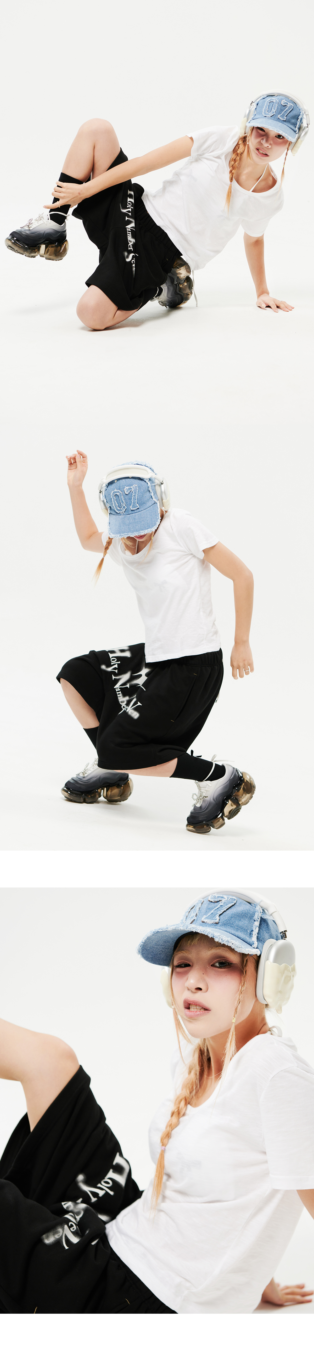 어른의 음료 알코올 진로의 컬러칩을 진하게 담은 데님 쇼츠입니다.