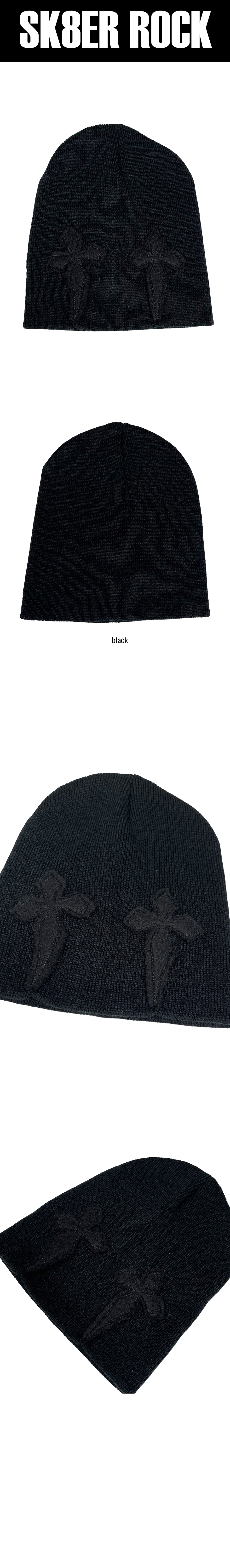 STUD CROSS UNCUFFED BEANIE_WHITE