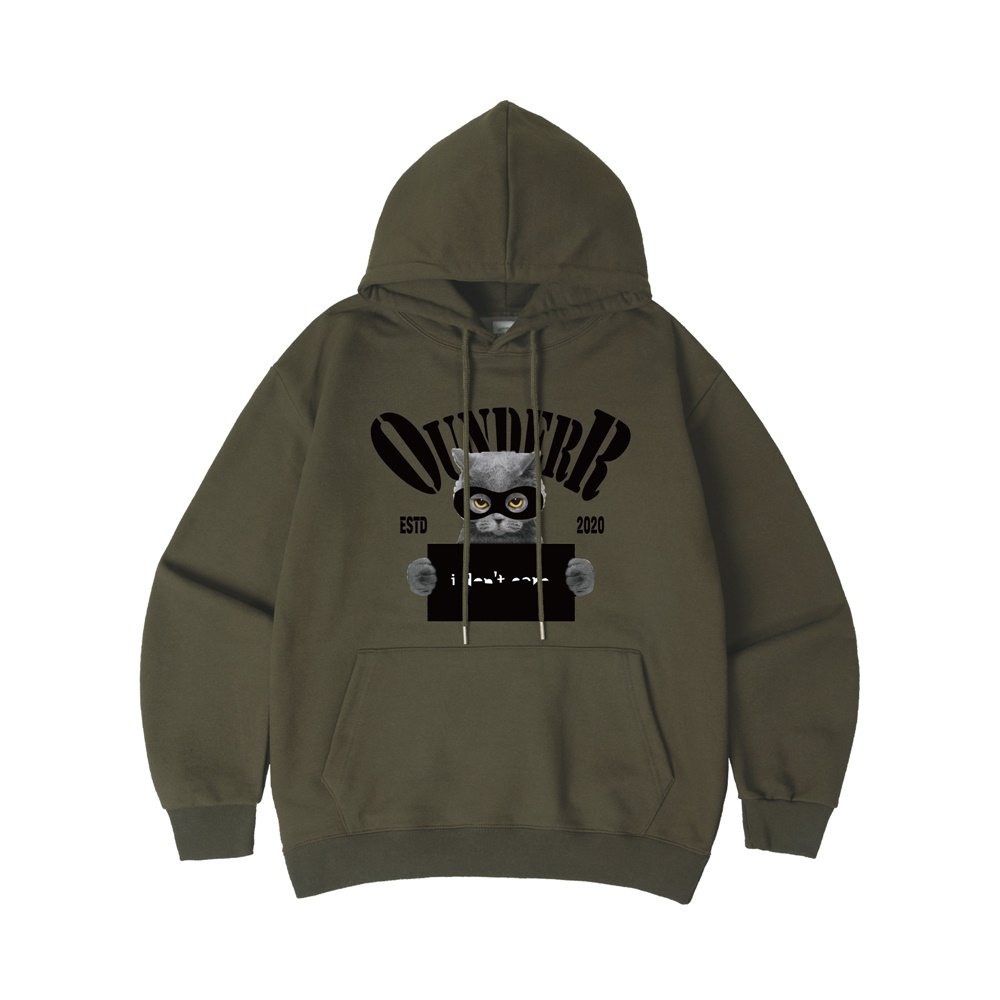 RIDING BIKE CAT 오버핏 후드 티셔츠 (멜란지 그레이)