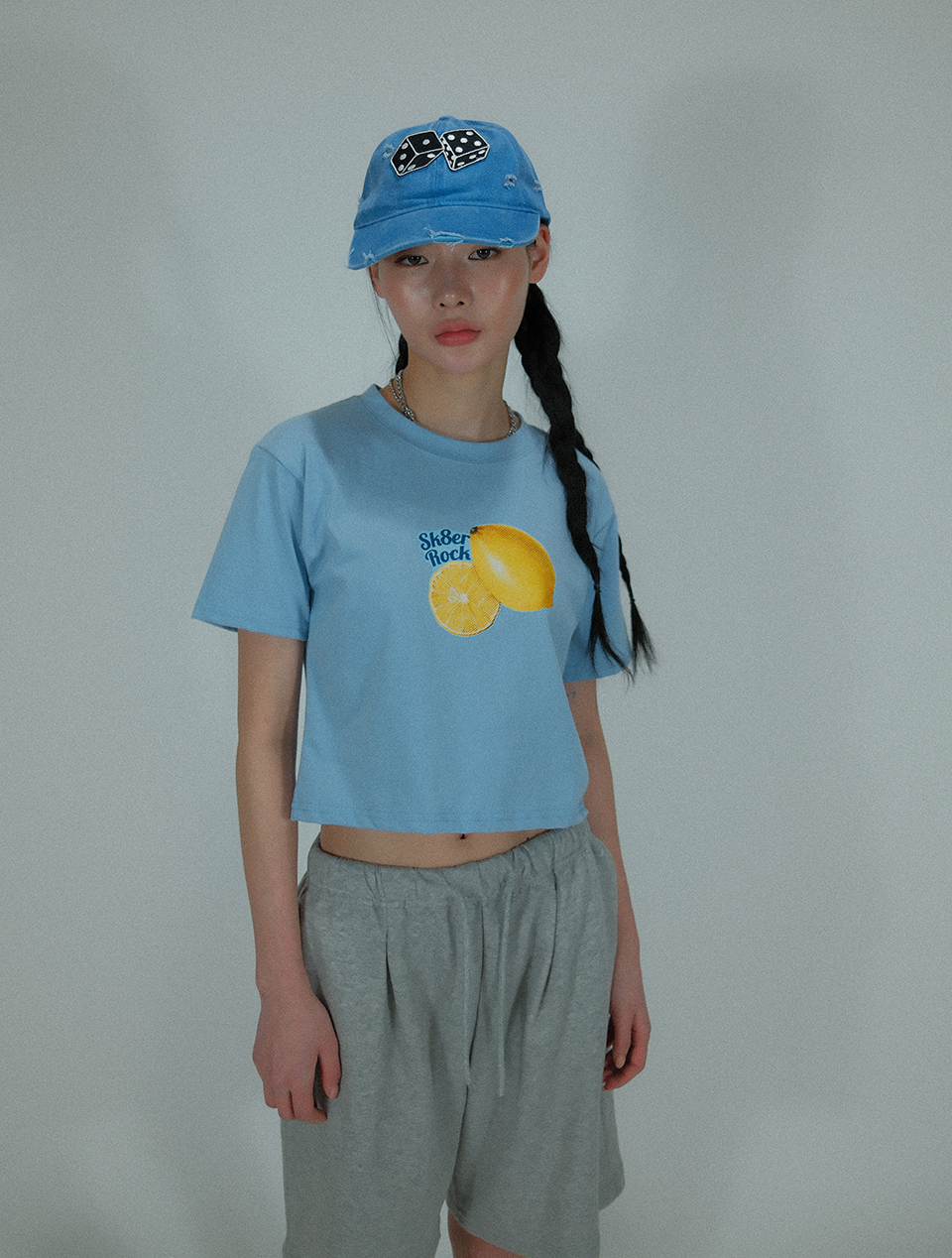 GRAPHIC BUTTON REGLAN CROP TOP_NV