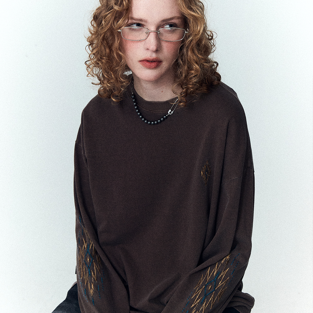 메쉬 원단,페이즐리 패턴 오버핏의 긴팔 티셔츠
