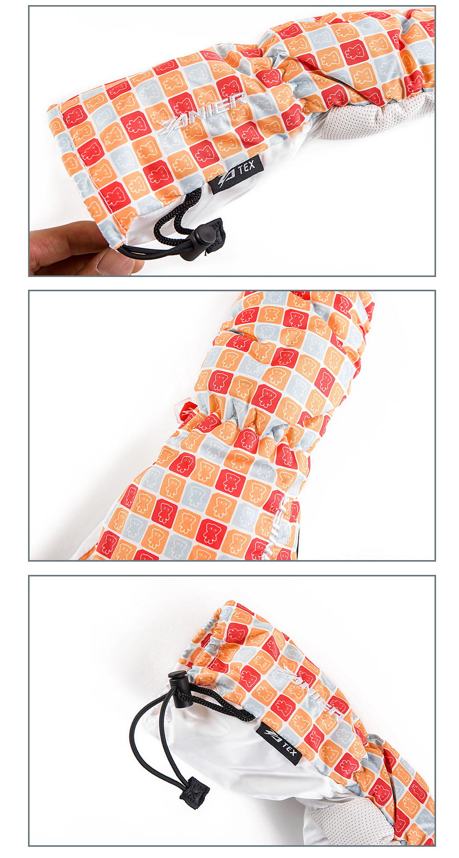 귀여운 베어패턴의 키즈용 스키 장갑